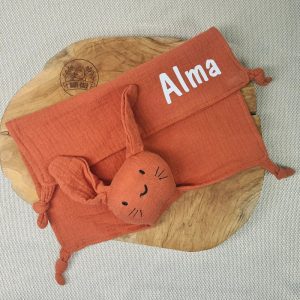Doudou Bébé Personnalisé – Forme Lapin – Prénom Gravé & Ultra Doux