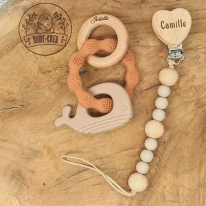 Duo Attache Tétine Personnalisée & Anneau de Dentition Dauphin – Cadeau Unique