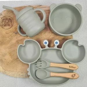 coffret repas bebe personnalise en Silicone – Assiette, Couverts, Jouet