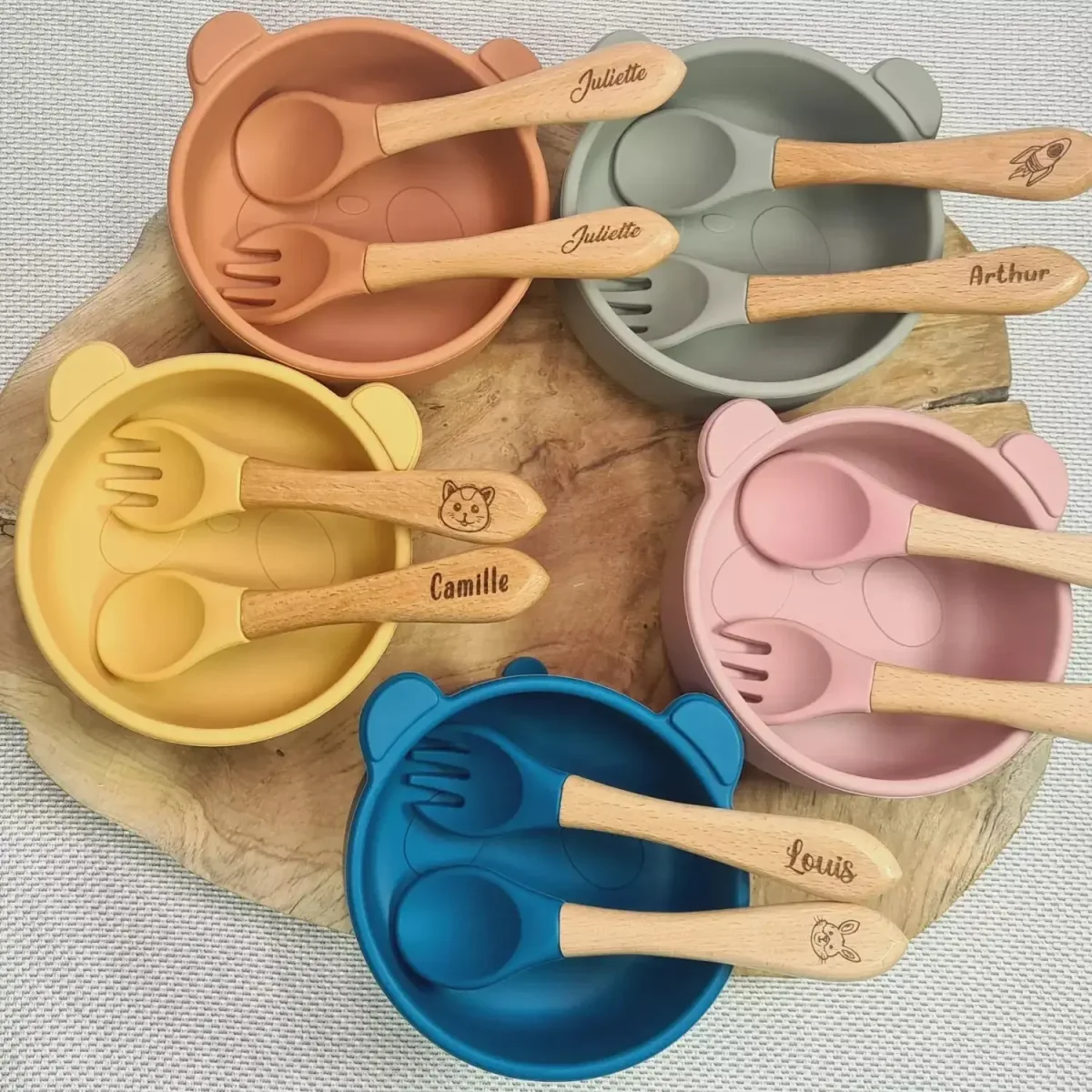 Bol à Ventouse Panda & Couverts Personnalisés en Silicone – Repas Bébé Sécurisé