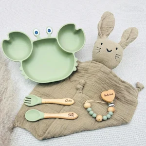 Transformez chaque repas en moment de joie avec ce duo repas bébé : un bol ventouse en forme de panda accompagné de couverts personnalisés. Pensé pour les bébés dès la diversification alimentaire, ce set signé Baby-Crea allie praticité, sécurité et personnalisation.