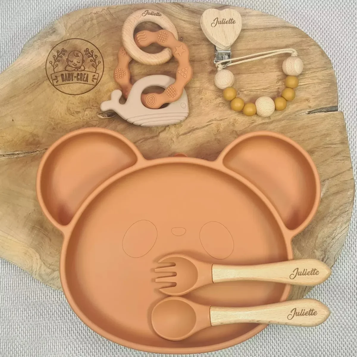 Offrez un cadeau de naissance à la fois utile, tendre et mémorable grâce à ce coffret repas bébé imaginé par Baby Crea. Idéal pour une naissance fille ou garçon, ce coffret complet est pensé pour accompagner les premiers repas de bébé tout en ajoutant une touche personnalisée pleine de douceur.