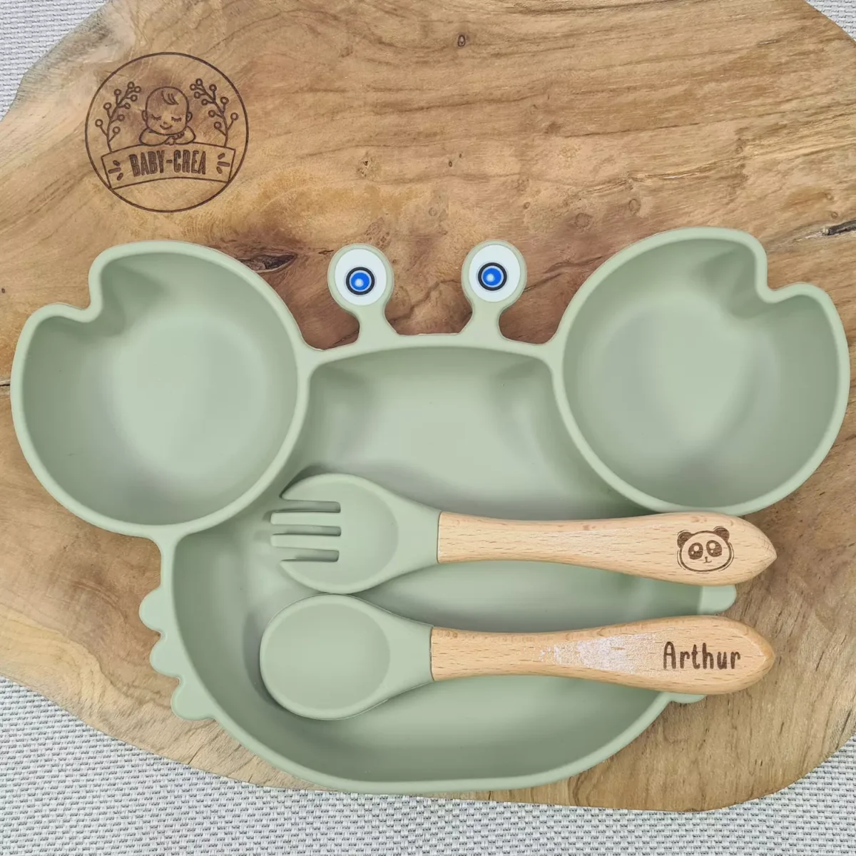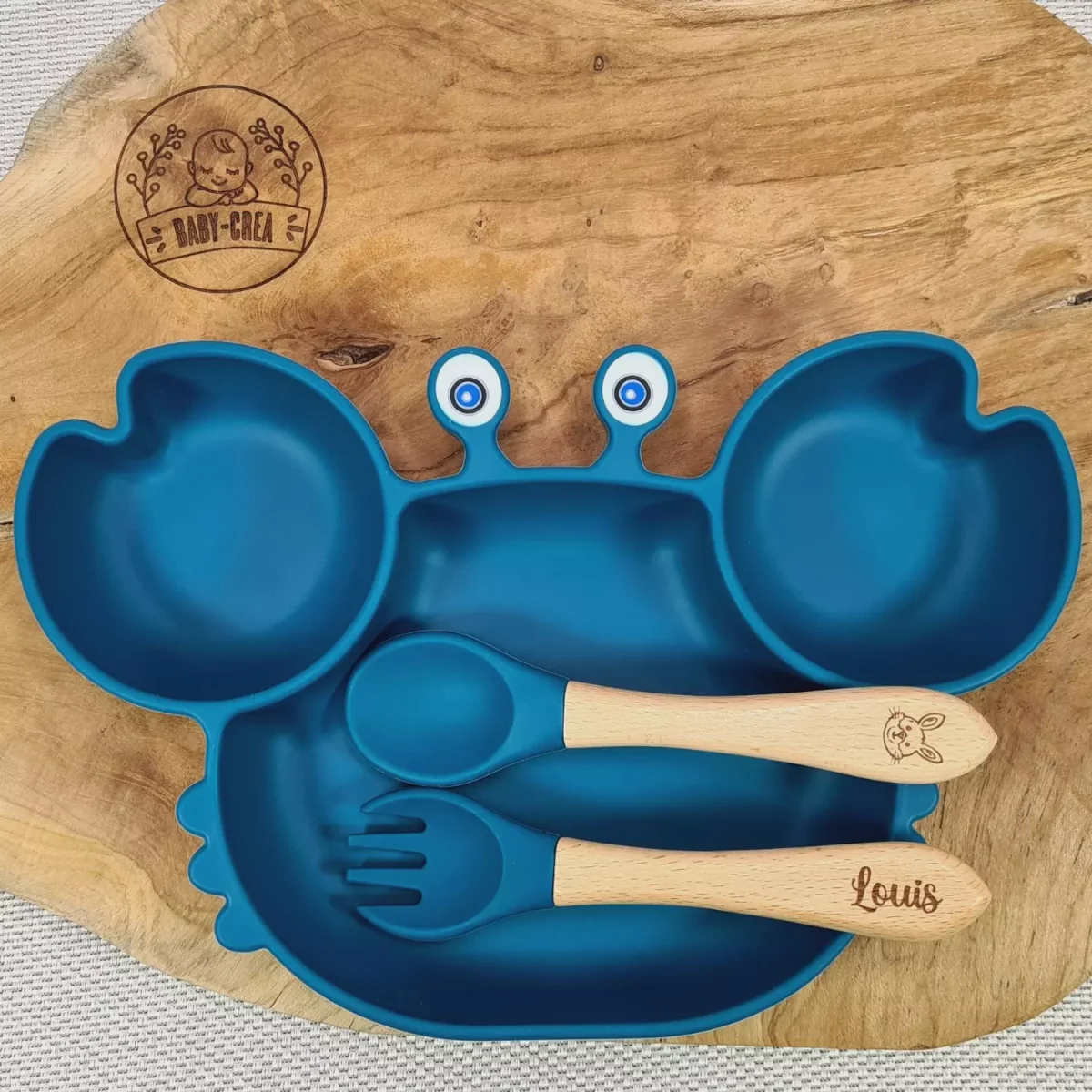 Coffret Repas Bébé Personnalisé – Assiette Crabe & Couverts Gravés