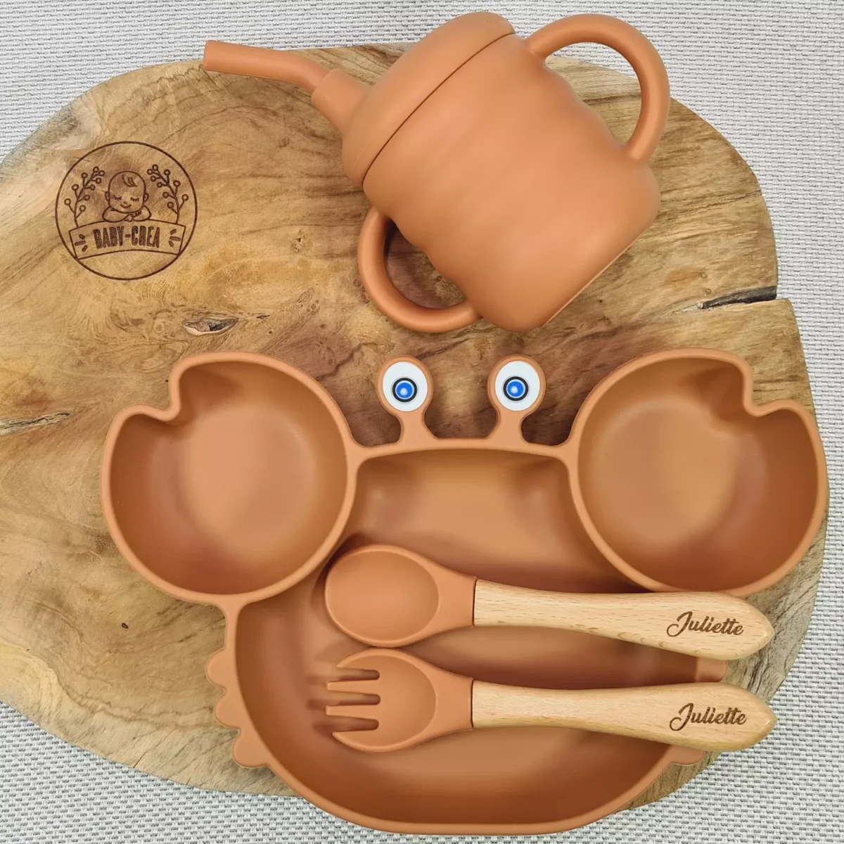 Coffret Repas Bébé Personnalisé – Assiette Crabe, Tasse & Couverts