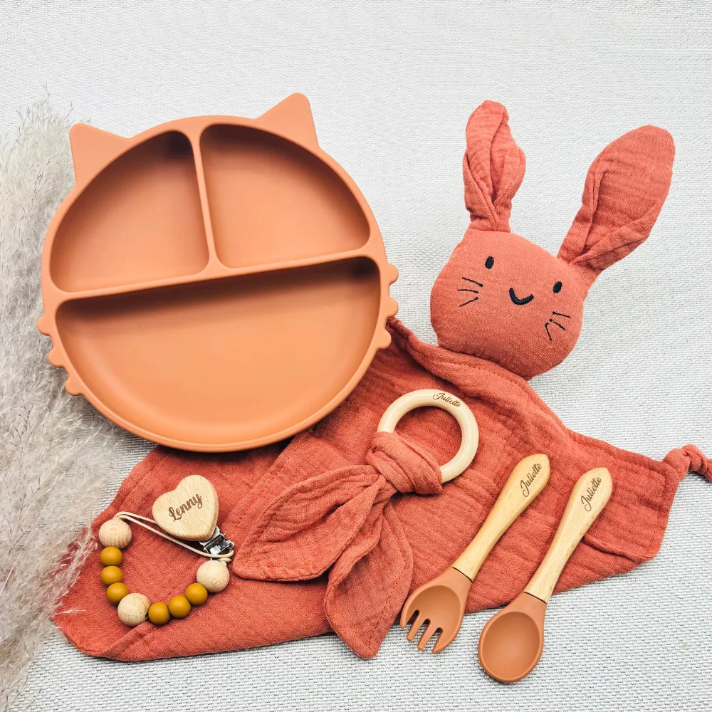 Ce coffret repas bébé personnalisé est un choix de cœur. Il allie praticité, sécurité et personnalisation dans un design soigné et intemporel. Chaque élément est assorti pour un rendu harmonieux, prêt à être offert dans son coffret raffiné.