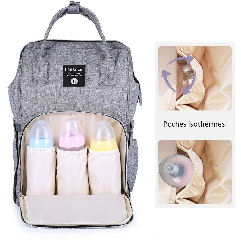 Il est équipé de nombreuses poches intérieures pour une organisation optimale, ainsi que de 3 poches avant isothermes pour garder les biberons au frais.